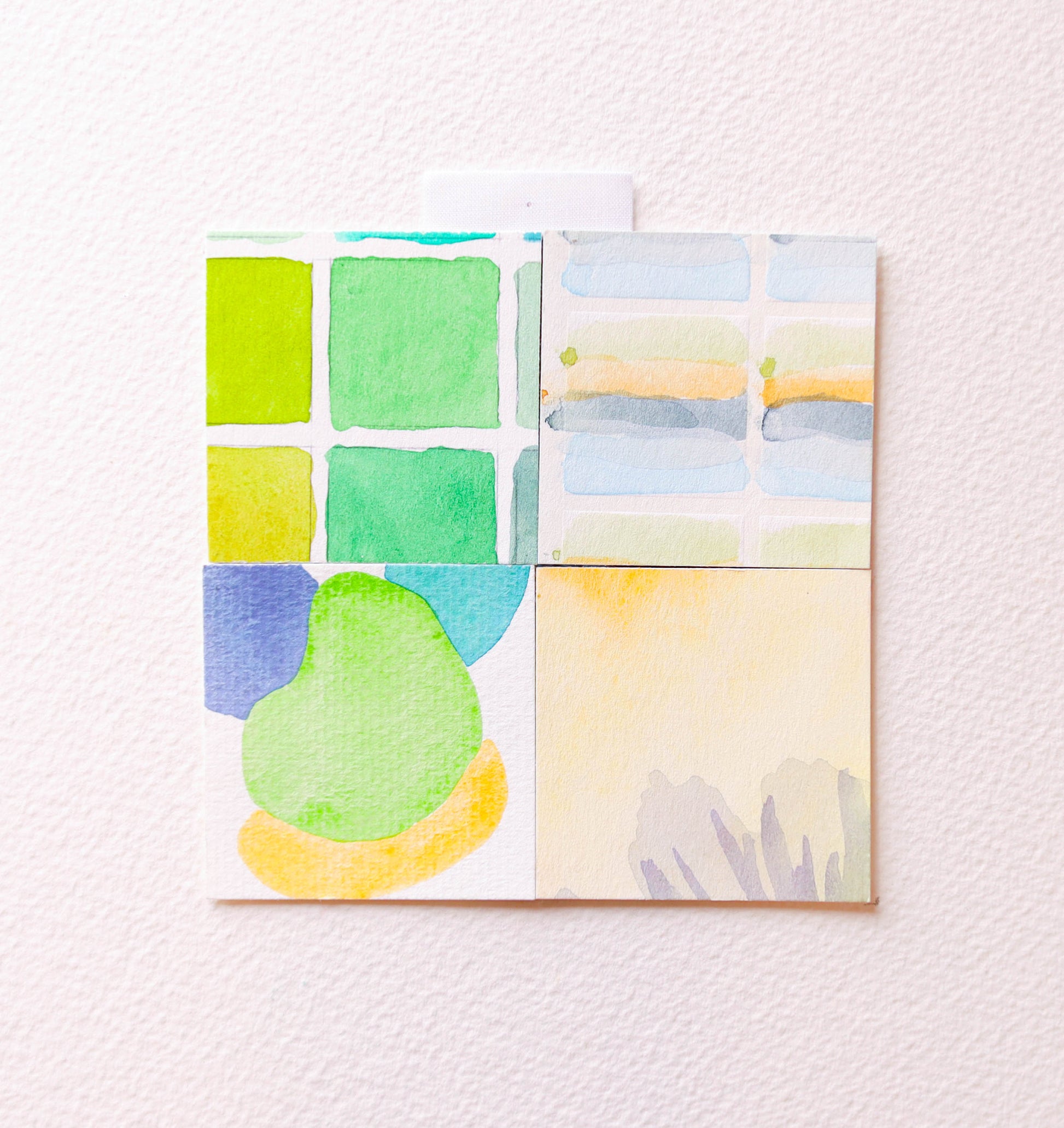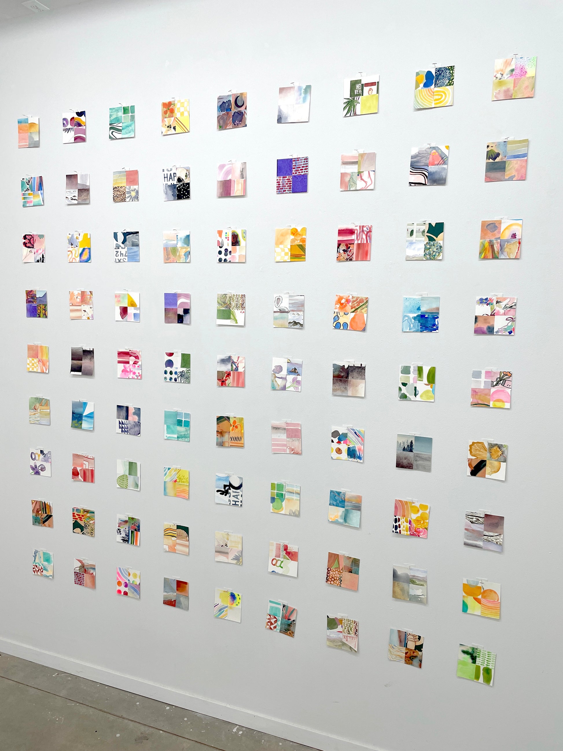These special mini paper quilts are composed of four 2" x 2" squares of original watercolor artwork sent to us by our amazing, generous community. We received work of all different sizes from over 60 people around the world and were completely blown away! From these pieces, we cut out thousands of individual squares in order to piece them back together to create new, original artworks.