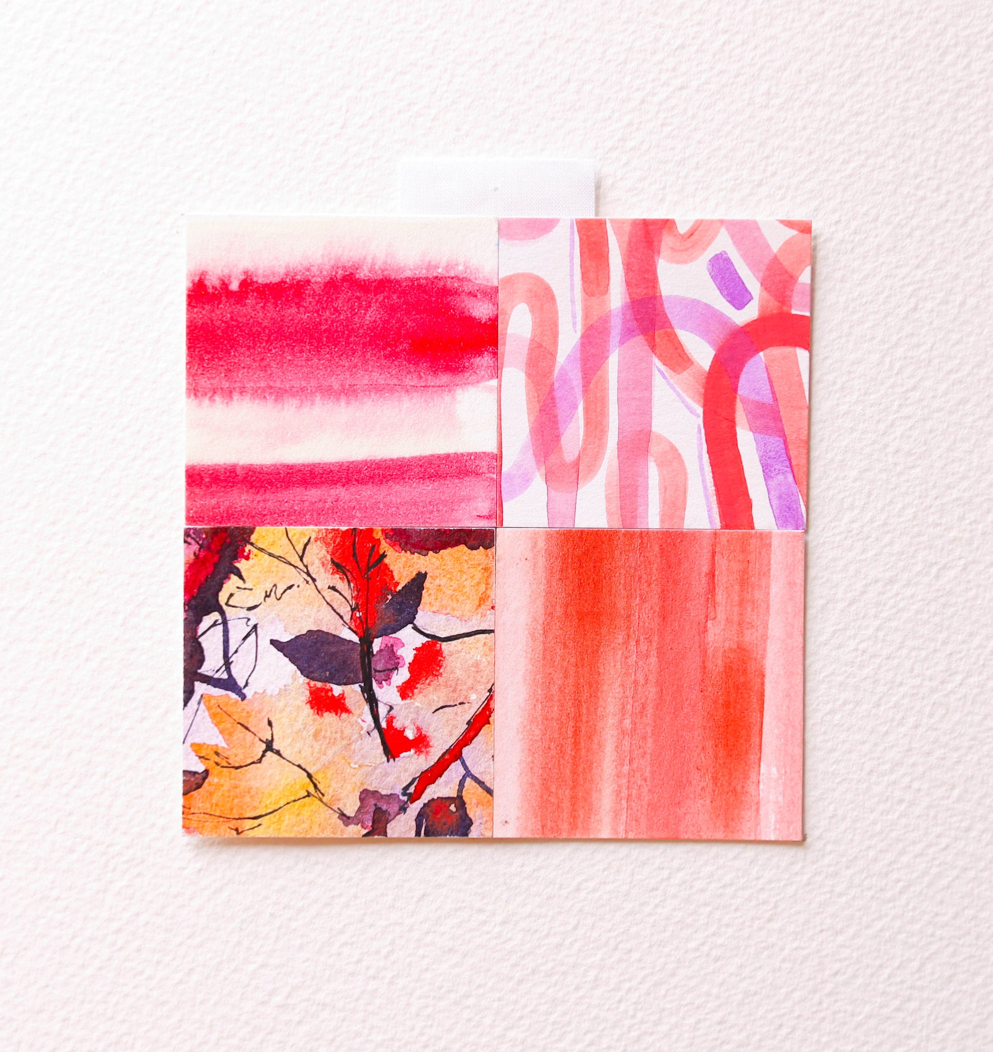 These special mini paper quilts are composed of four 2" x 2" squares of original watercolor artwork sent to us by our amazing, generous community. We received work of all different sizes from over 60 people around the world and were completely blown away! From these pieces, we cut out thousands of individual squares in order to piece them back together to create new, original artworks.