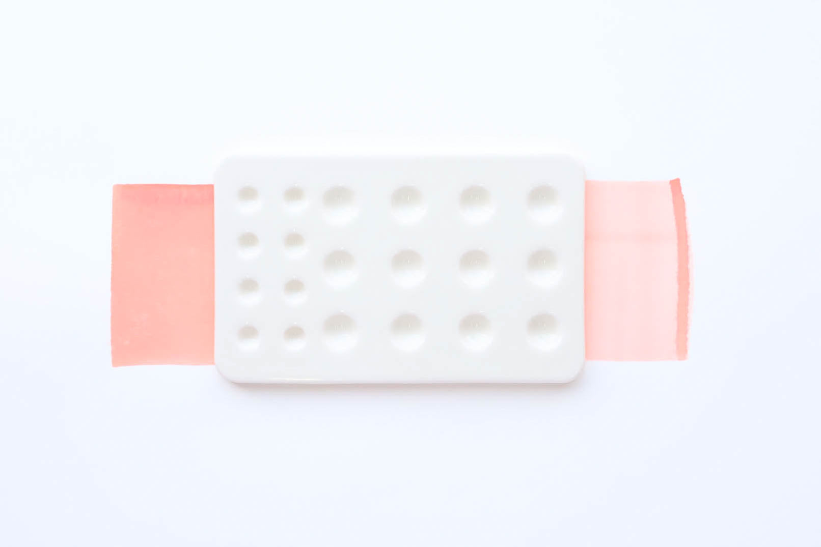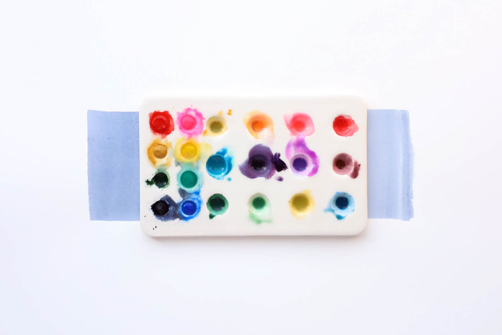 This one-stop-shop palette highlights artist and CfM instructor Julie Cloutier's knack for joining beauty with clean functionality. To fill the smaller circles, just squeeze in tube watercolor or gouache until you have a little dome in each, then leave the palette to dry (usually a few days). Once the paint firms up, you're ready to create; use the larger, empty circles as mixing wells!