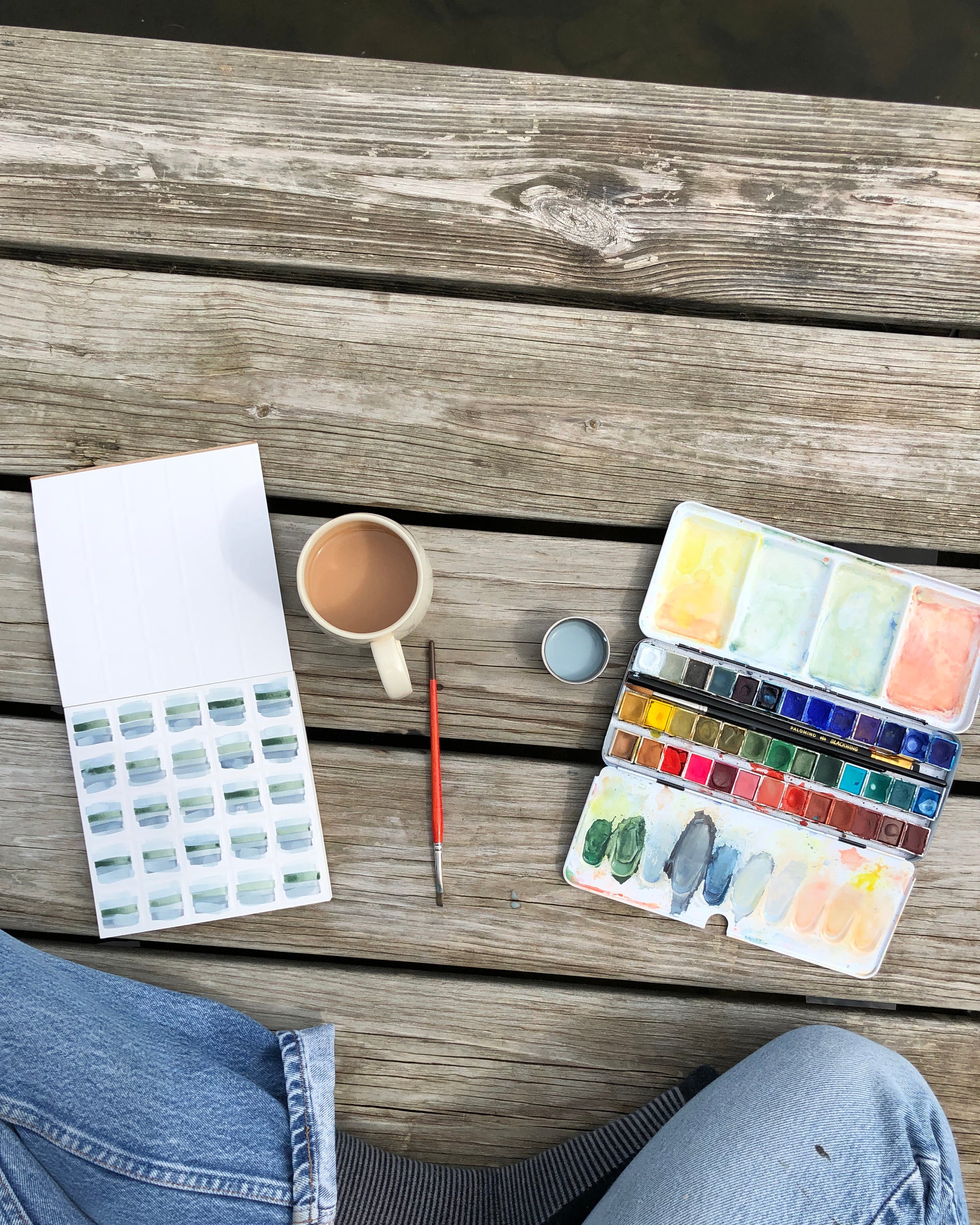 Painting repeat landscapes has been a go to for Alexis on every getaway since a trip to the Yuba river back in 2017. She first picked up the grid paper to use the squares to try to capture the the movement and layers of color in the clear, flowing river.