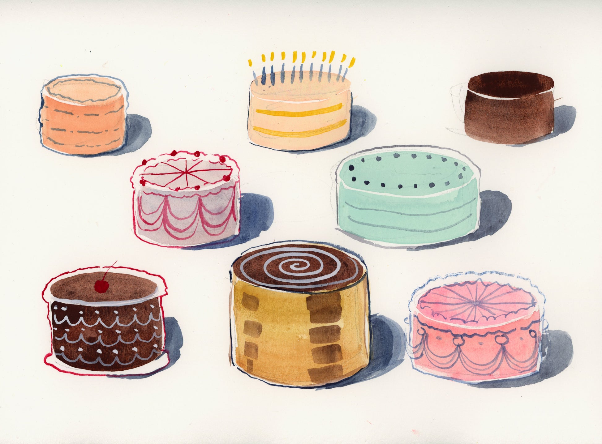 Happy Birthday to Wayne Thiebaud! I thought it would be fun to paint cakes together in his honor 🎂